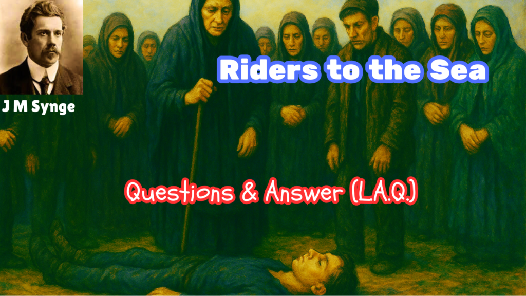 Ans. In J. M. Synge’s one-act play ‘Riders to the Sea’, the sea is not merely a physical setting but an active force that controls the lives of the islanders and shapes the play’s tragic action. The sea symbolises fate, nature’s indifference and a source of inevitable loss. The repeated deaths of Mourya’s family members show that human life is governed by an unavoidable destiny in the form of the sea. The sea represents nature’s indifference to human suffering. It gives the islanders their livelihood, yet it shows no mercy in taking away their lives. Finally, the sea is a constant source of inevitable loss. Mourya loses her husband, grandfather and all her sons.
